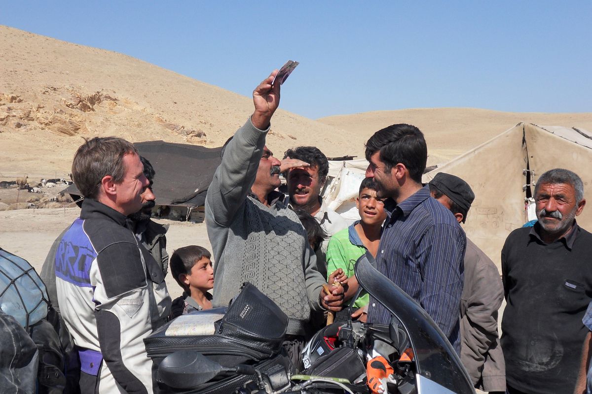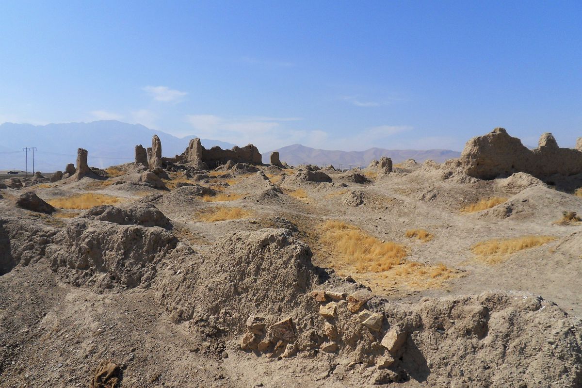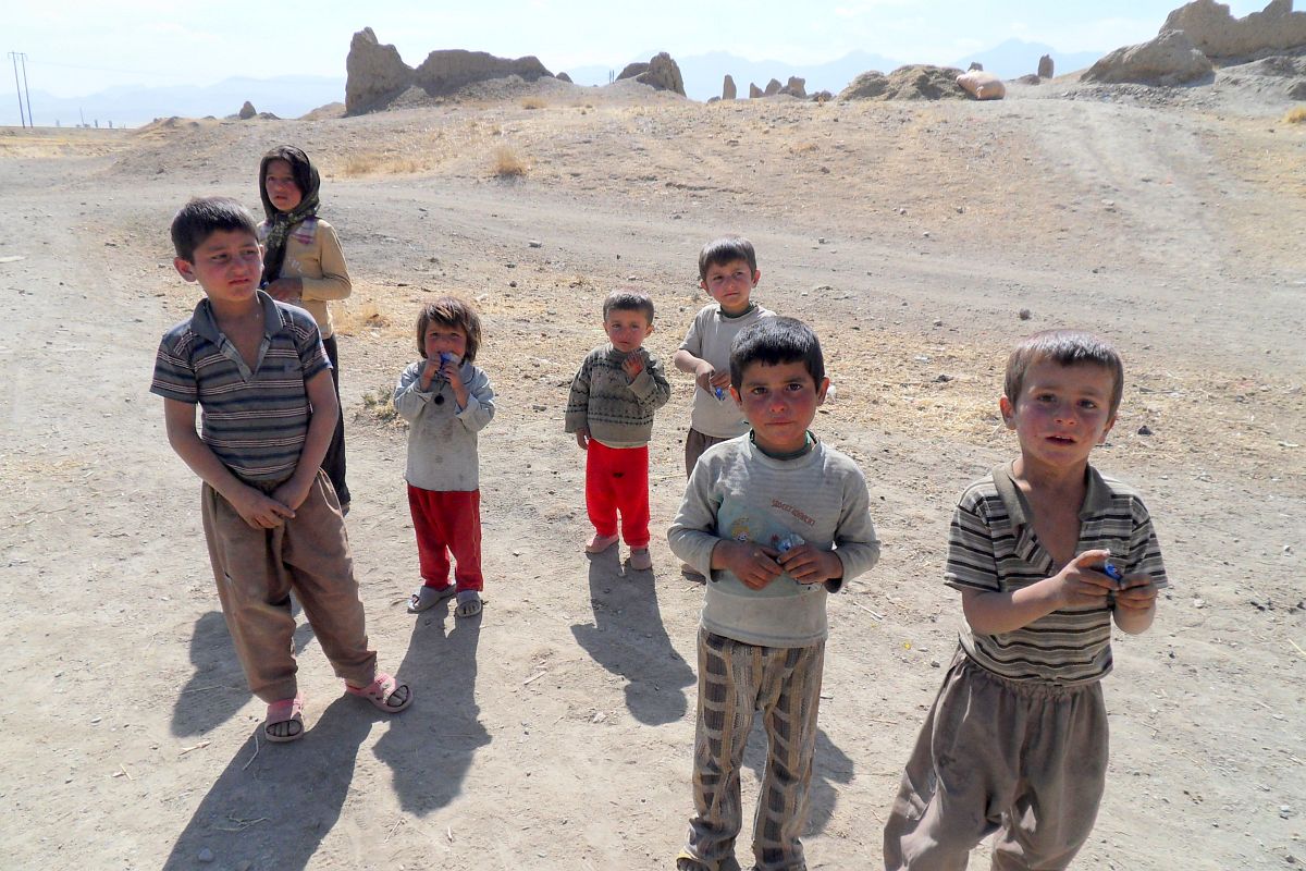 Beduinen bei einer verfallenen Lehmsiedlung, Iran